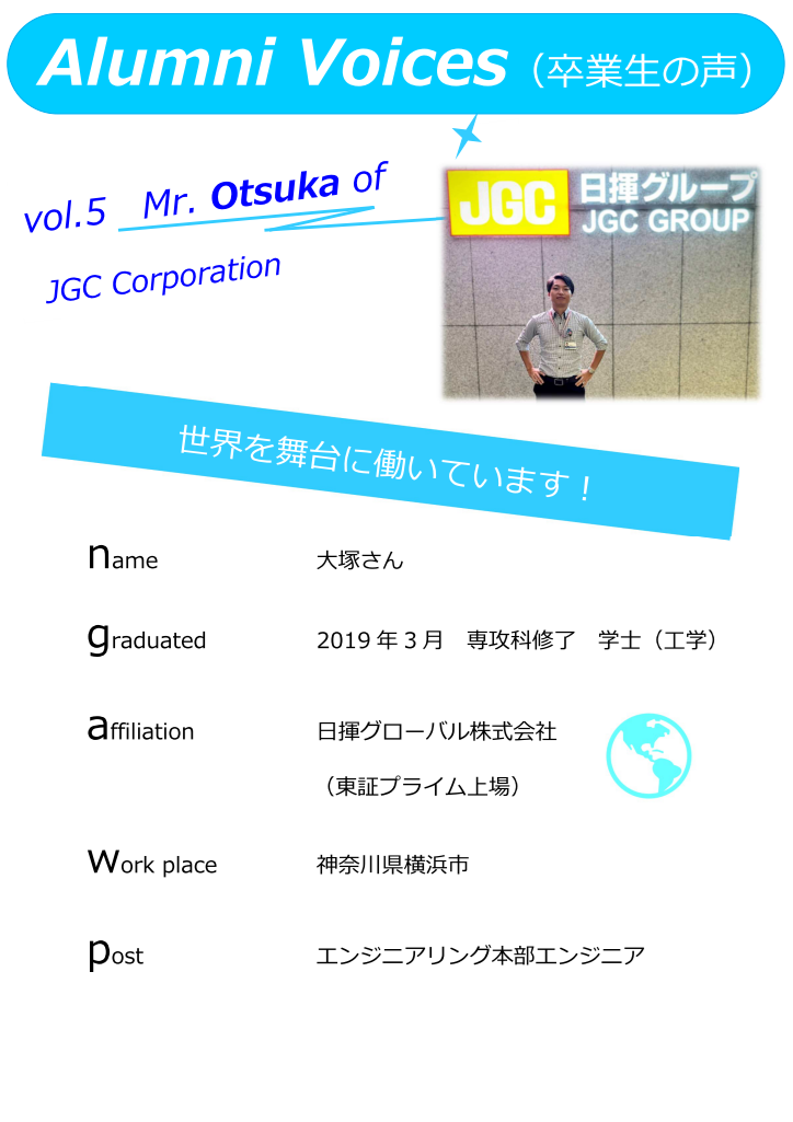 Alumni Voices vol. 5(日揮グローバル エンジニアリング本部)を掲載しました!