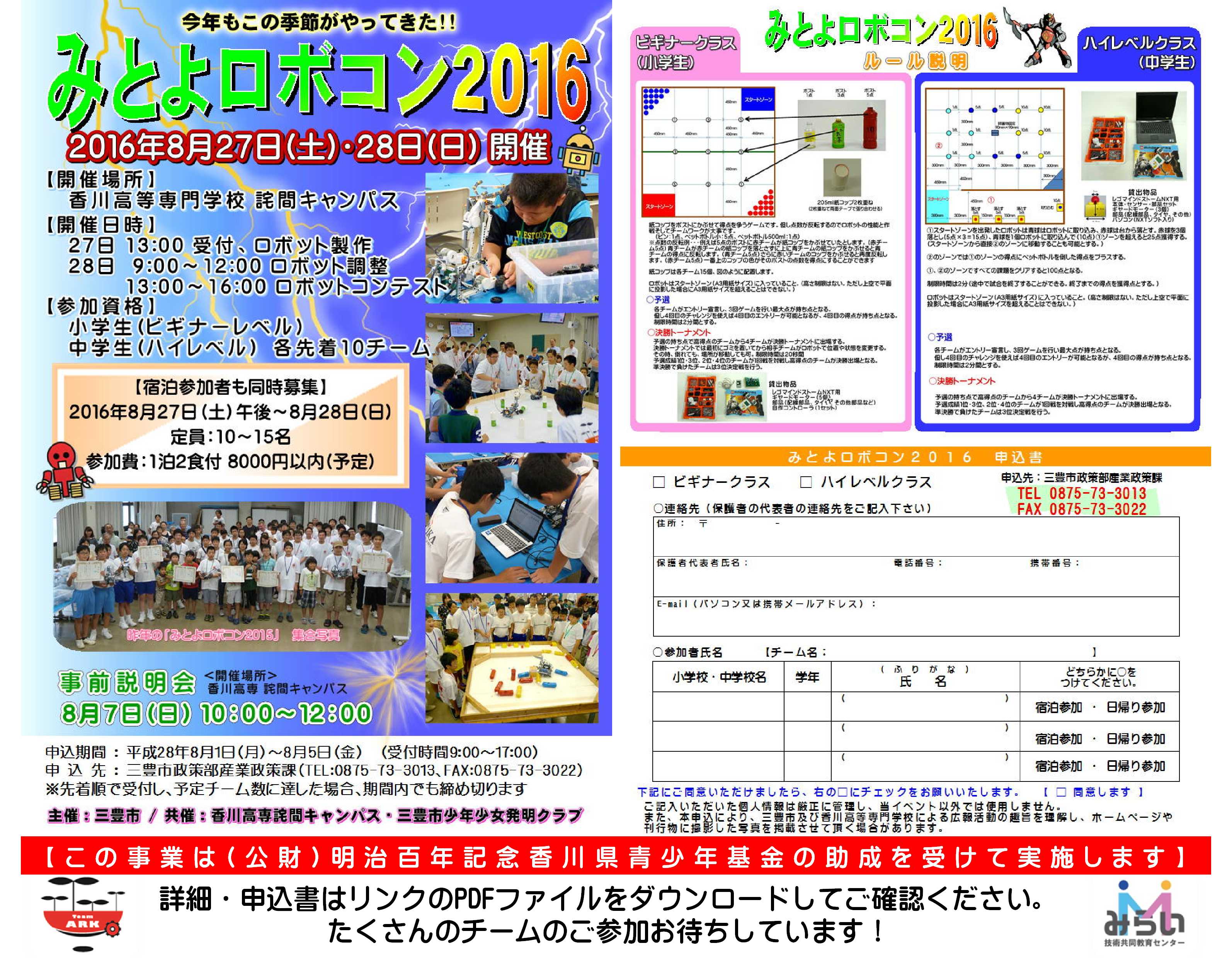 第10回「みとよロボコン2016」は、8月27日(土)~28日(日)に宿泊型ロボットコンテストとして開催いたします。(日帰りでの参加も可能です。) 詳細はPDFファイルをご確認の上、8/7(日)の事前説明会にご参加ください。