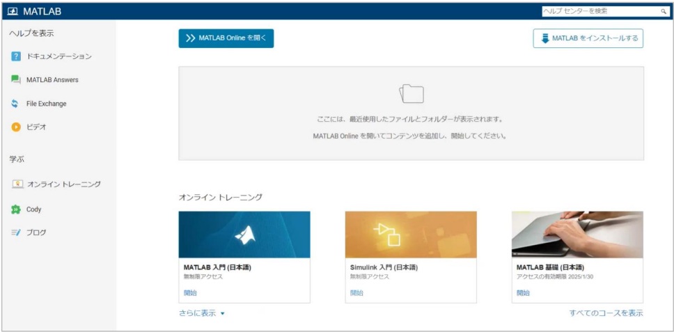 MATLAB Onlineの利用方法については、MATLABスタートアップガイドの14~18ページをご確認ください。