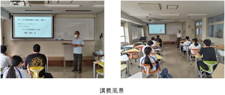人財バンクによる特別講座「微分・積分を紐解く」を開催しました (2023/9/19) 令和5年9月19日(火)、20日(水)、21日(木)に本科2年生を対象とした特別講座「微分・積分を紐解く」を開催しました。本講座は、本校名誉教授の鎌田弘先生が講師となり、高松工業会が企画する人財バンクの活動の一環として実施されたものです。機械工学科の2年生が3名参加しました。 初日は、ガリレオ・ガリレイの斜面実験から、平均の速さ、瞬間の速さと移動距離について講義と演習が行われました。二日目には、初日の結果をもとに、ガリレオ流の微分法・積分法について講義と演習が行われました。最終日はガリレオ流の微分法・積分法と学校の授業で習った微分法・積分法の関連について講義と演習が行われました。演習時は、創造工学専攻の学生2名がティーチングアシスタントを務めました。本講座を通じて講師と学生の間で活発な質疑・応答が行われ、微分・積分の基礎概念の理解が深まったものと思います。 人財バンクの活動にあたっては、本校産業技術振興会のご支援を頂いております。高松工業会では、様々な形で学校と連携し母校の発展のために支援していきたいと考えています。 |