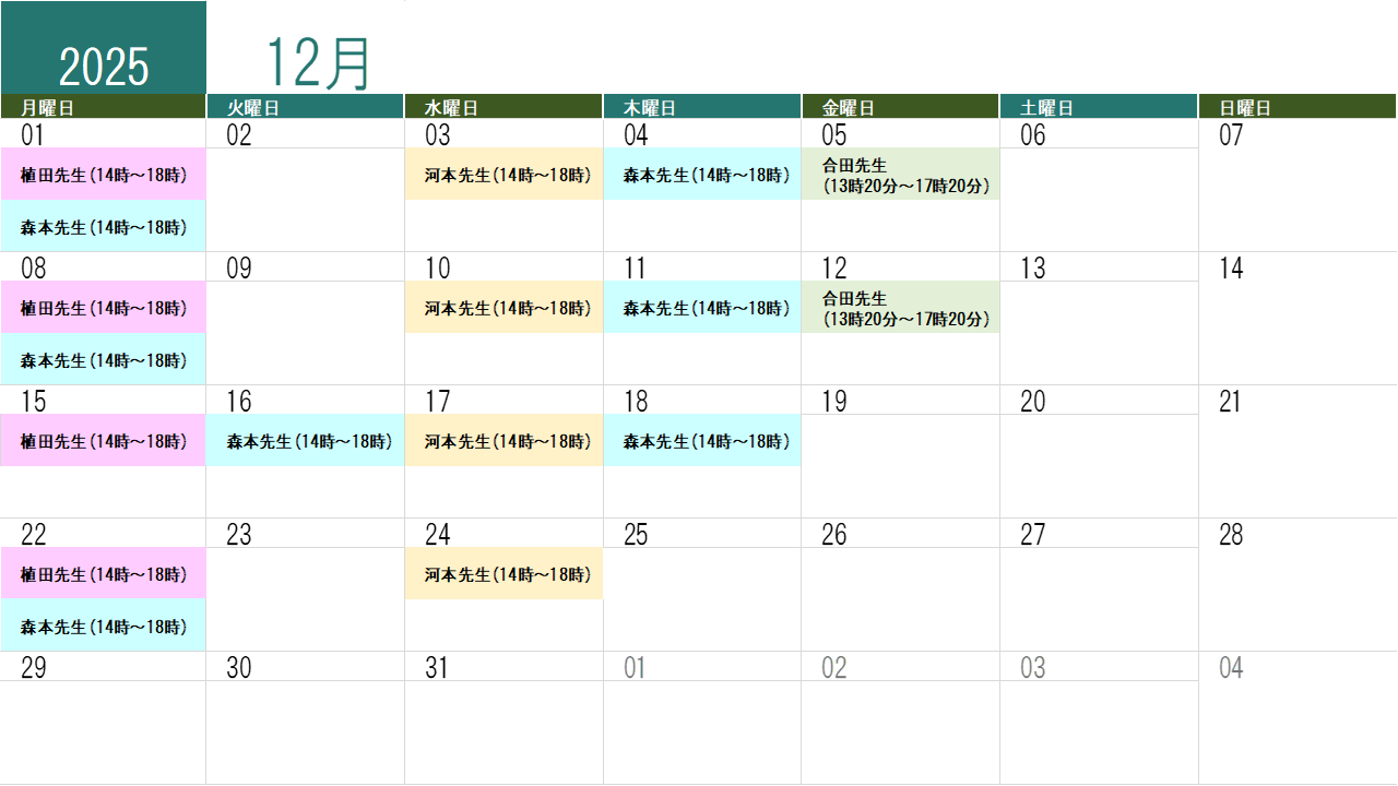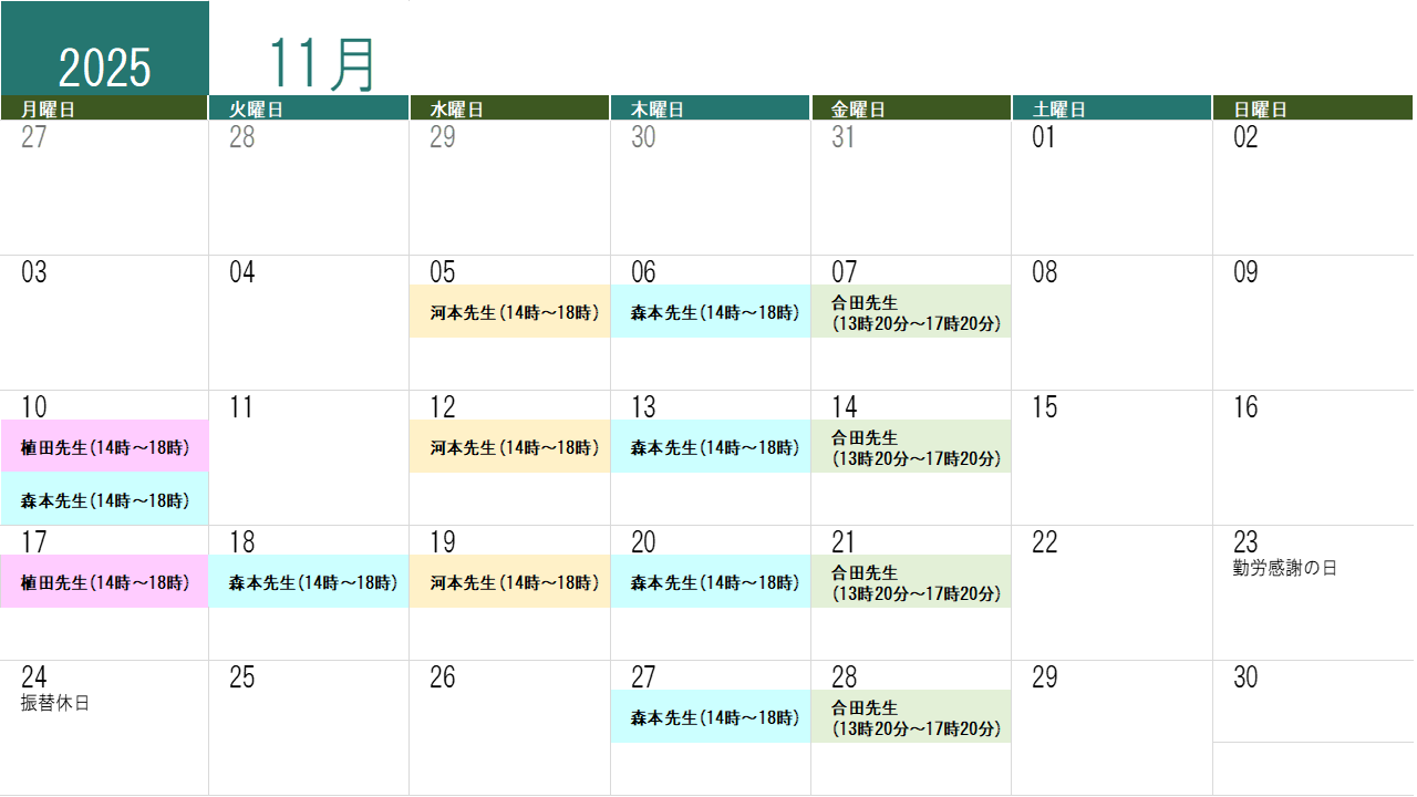 予約状況カレンダーには時間確定後に反映されるようになります。