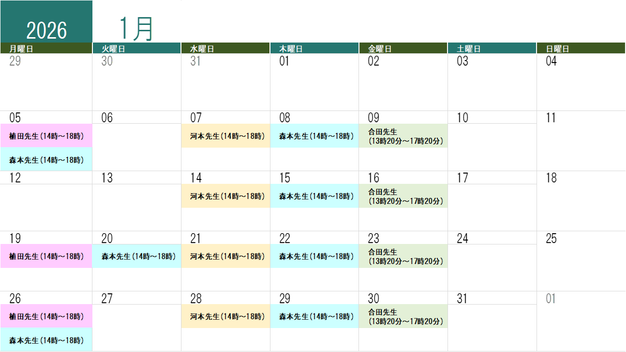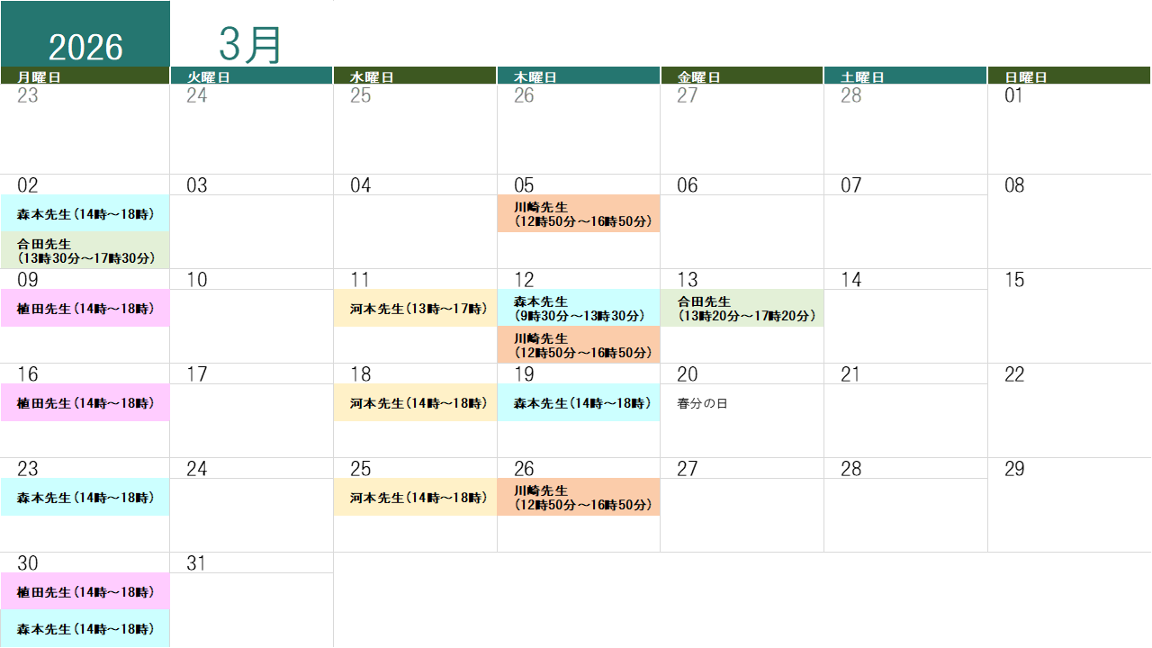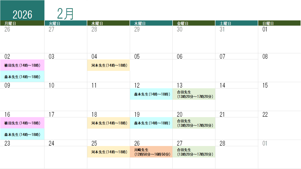 予約状況カレンダーには時間確定後に反映されるようになります。