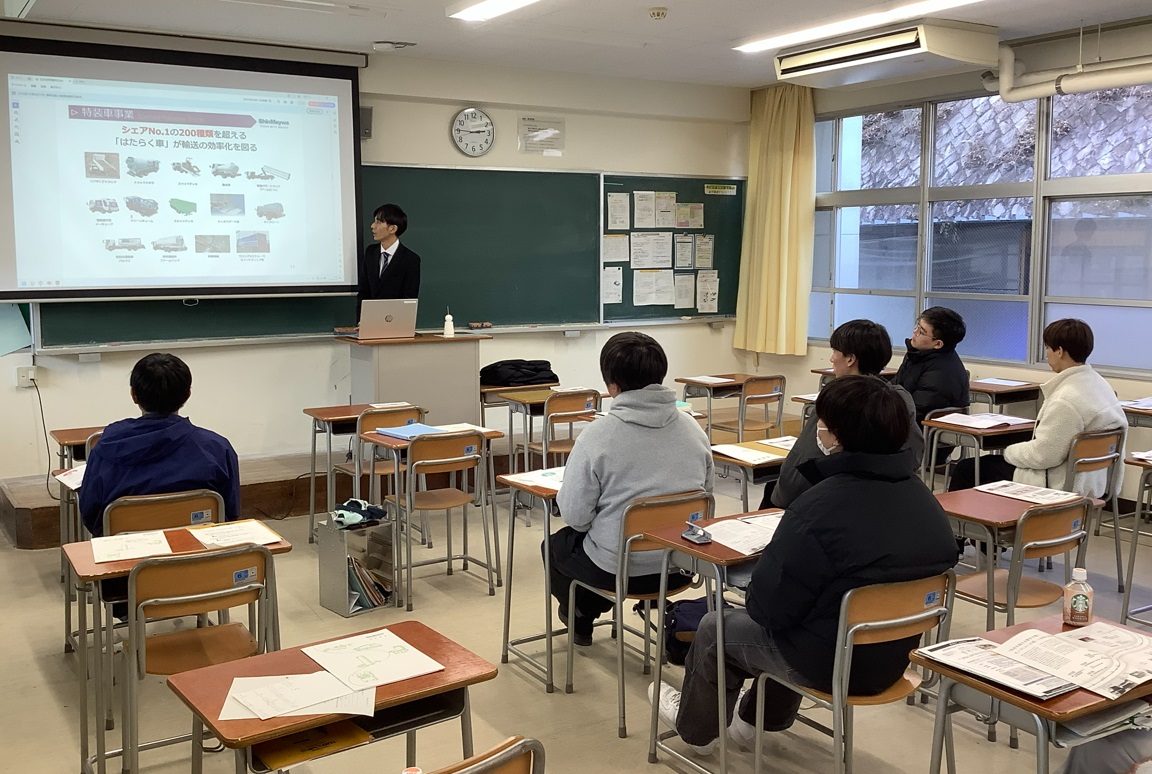 航空機メーカーで特装車の設計業務に従事される本校機械工学科OBによる講話を実施
