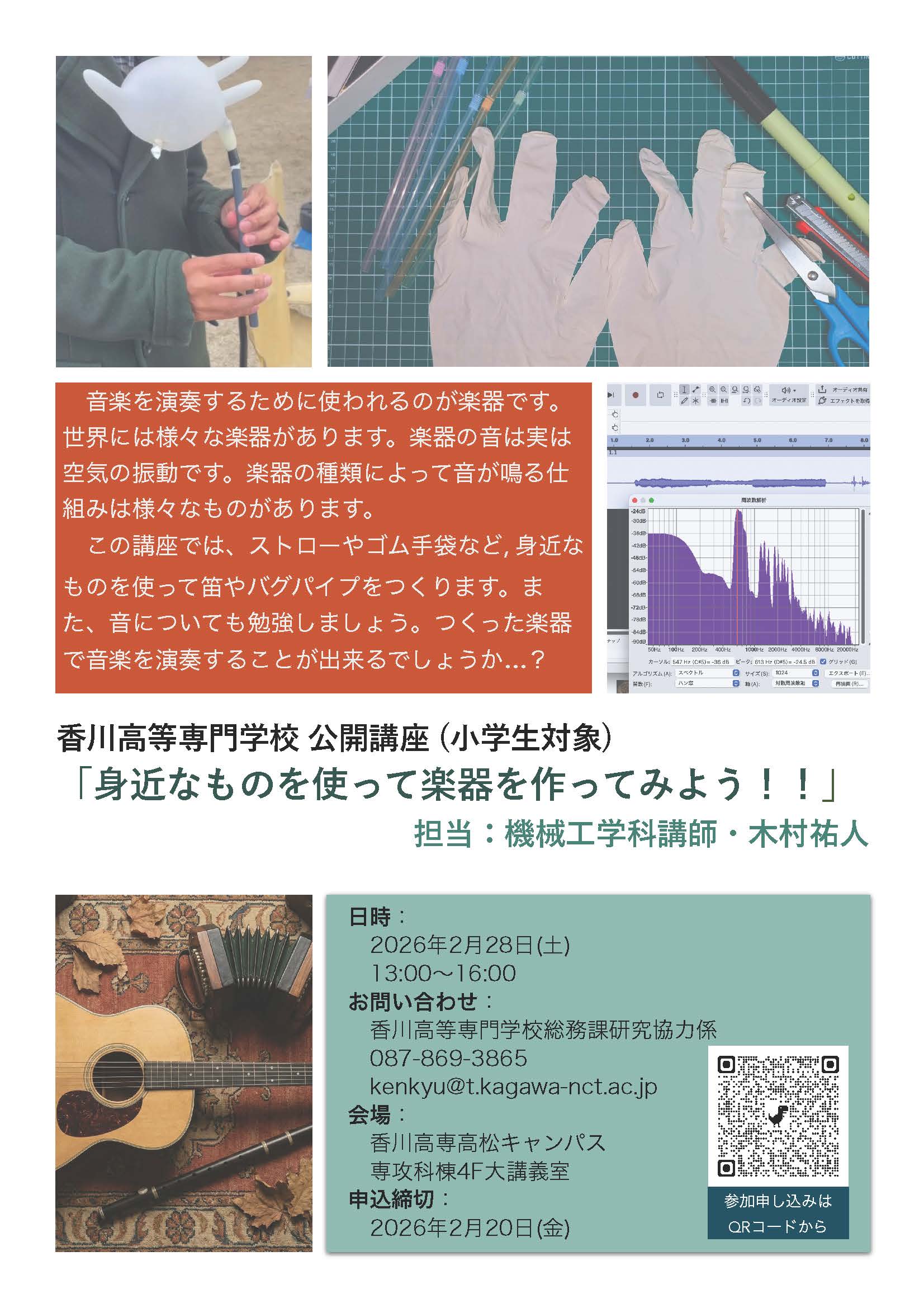 公開講座「身近なものを使って楽器を作ってみよう!」を開催します