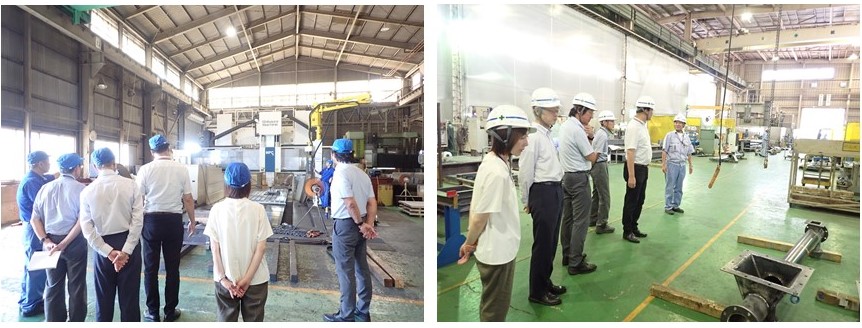 次に会員企業である株式会社トーコーを訪問しました。同社でも最初に代表取締役社長の東様や技術設計部の田中様から会社概要の説明、求人状況をご説明いただき、その後工場を見学し、工程等についての説明をいただきました。