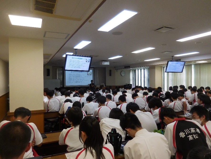 香川県子ども女性相談センターよりジョーンズ先生をお招きし、デートDVといっても多様な暴力の種類があること、シミュレーションを通じて良好な関係を保つ方法について理解することができました。