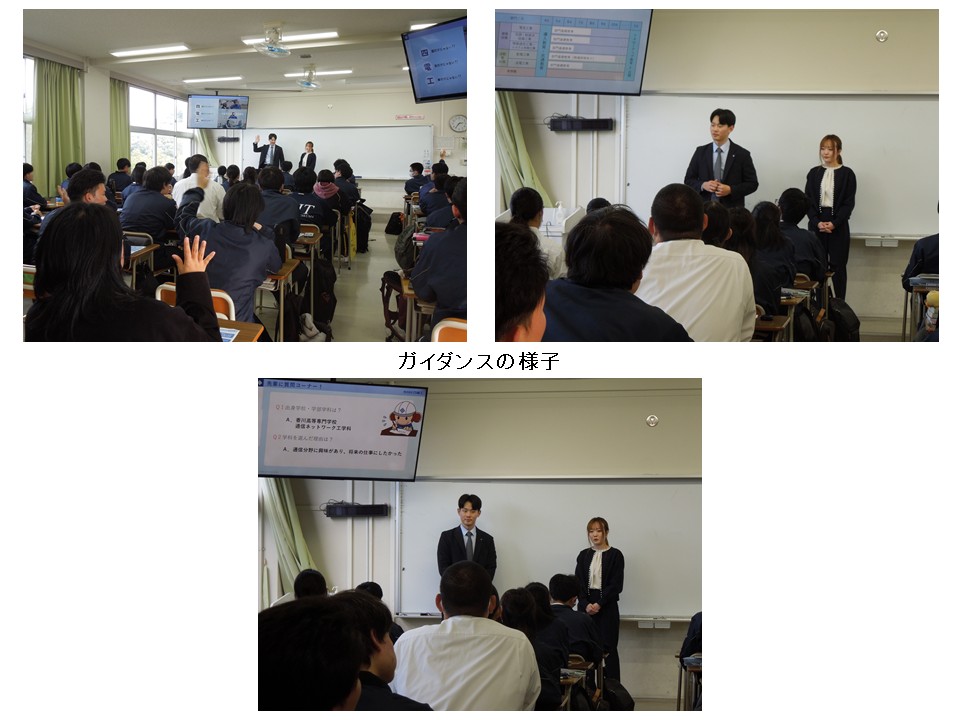 令和7年11月6日(木)、株式会社四電工から山﨑公太郎氏と横山綺音氏をお招きして、通信ネットワーク工学科の3年生を対象に低学年向けキャリアガイダンスを開催しました。