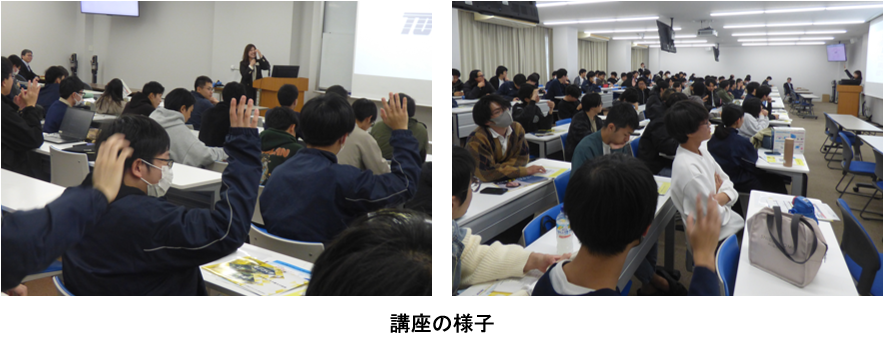 また、これから就職活動をするにあたって「身近なことに興味をもち、調べてみる」ことが大切であること、入社後に後悔しないために確認しておいたら良いことなどを楽しくお話しされ、学生たちは終始興味深く聞いていました。