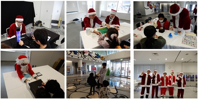 多くのサンタクロースが集まり、科学演示実験を披露しました。