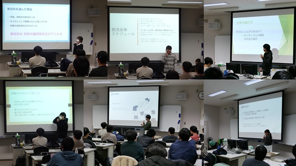 長岡技術科学大学の先生や専攻科生と情報工学科5年生が後輩に進学・就職に関するキャリアトークを実施しました