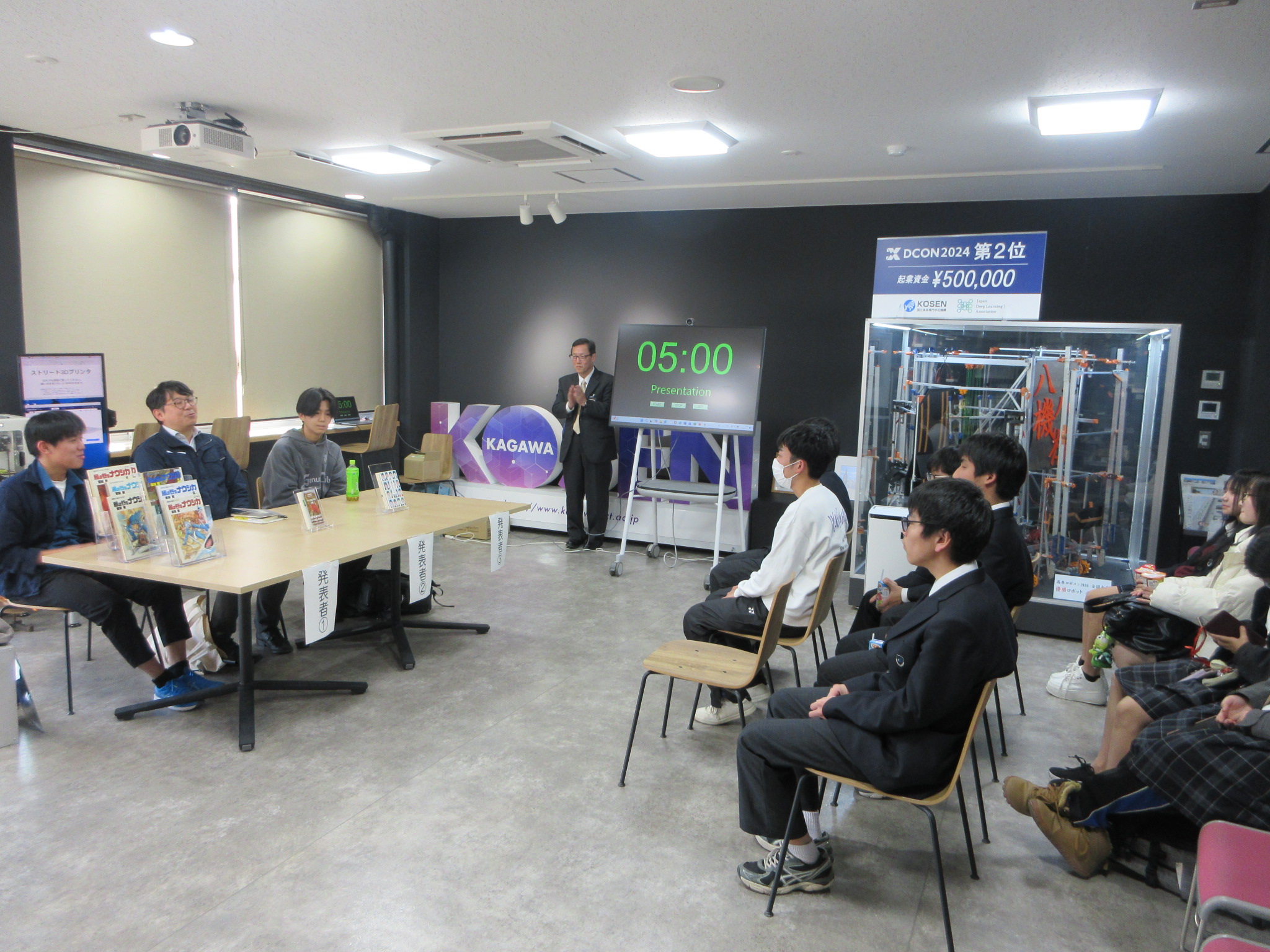 令和8年1月15日(木),学生の皆さんに少しでも本の魅力を感じてもらうために,高松キャンパス図書館が主催して「第7回ビブリオバトル」を開催しました。「ビブリオバトル」とは,発表者がおすすめの本を紹介し,参加者全員(発表者・聴講者)が一番読みたいと思った本「チャンプ本」を決める「知的書評合戦」です。今回はフリーテーマで,19名の学生・教職員が参加し,2名の学生と1名の教員が,1人5分間の持ち時間で自らのおすすめ本を紹介。発表ごとに参加者全員によるディスカッションを行い紹介本についての魅力を語り合いました。すべての発表終了後に行われた参加者全員による投票の結果,機械工学科4年次田至吹さんの紹介による『何者』が「チャンプ本」に決まりました。