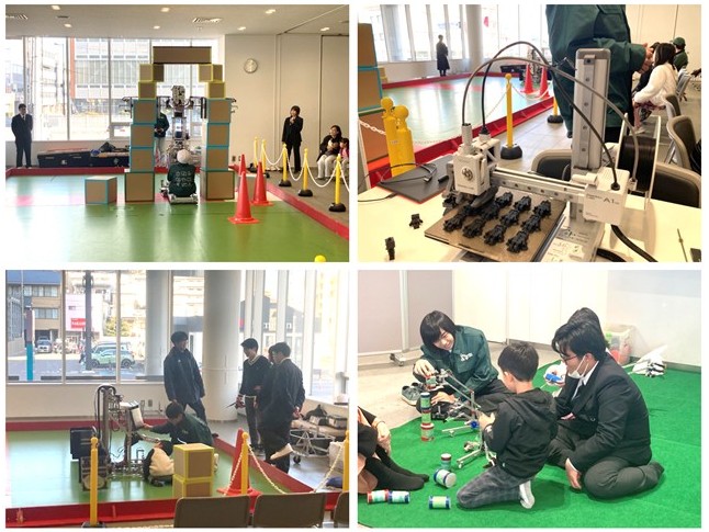 ロボットの実演とミニロボ操縦体験の様子