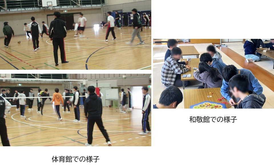 新寮長の運営・指揮のもと、第一体育館と和敬館の二手に分かれ、体育館ではバレーボール・ドッジボールを、和敬館ではカード・ボードゲームを行い、学年をこえた寮生間の交流を深めました。