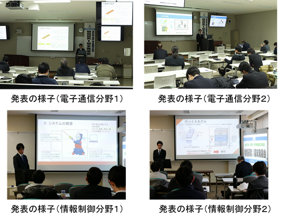 3月2日(月)13:00~16:00、電子情報通信工学専攻において、専攻科1年生の特別研究Ⅰの期末発表会を行ないました。電子通信分野と情報制御分野の2セッションで、研究成果を発表し、活発な質疑応答を行ないました。現在、来年度6月にある学修総まとめ科目計画書提出に向けて、継続して研究に取り組んでいます。
