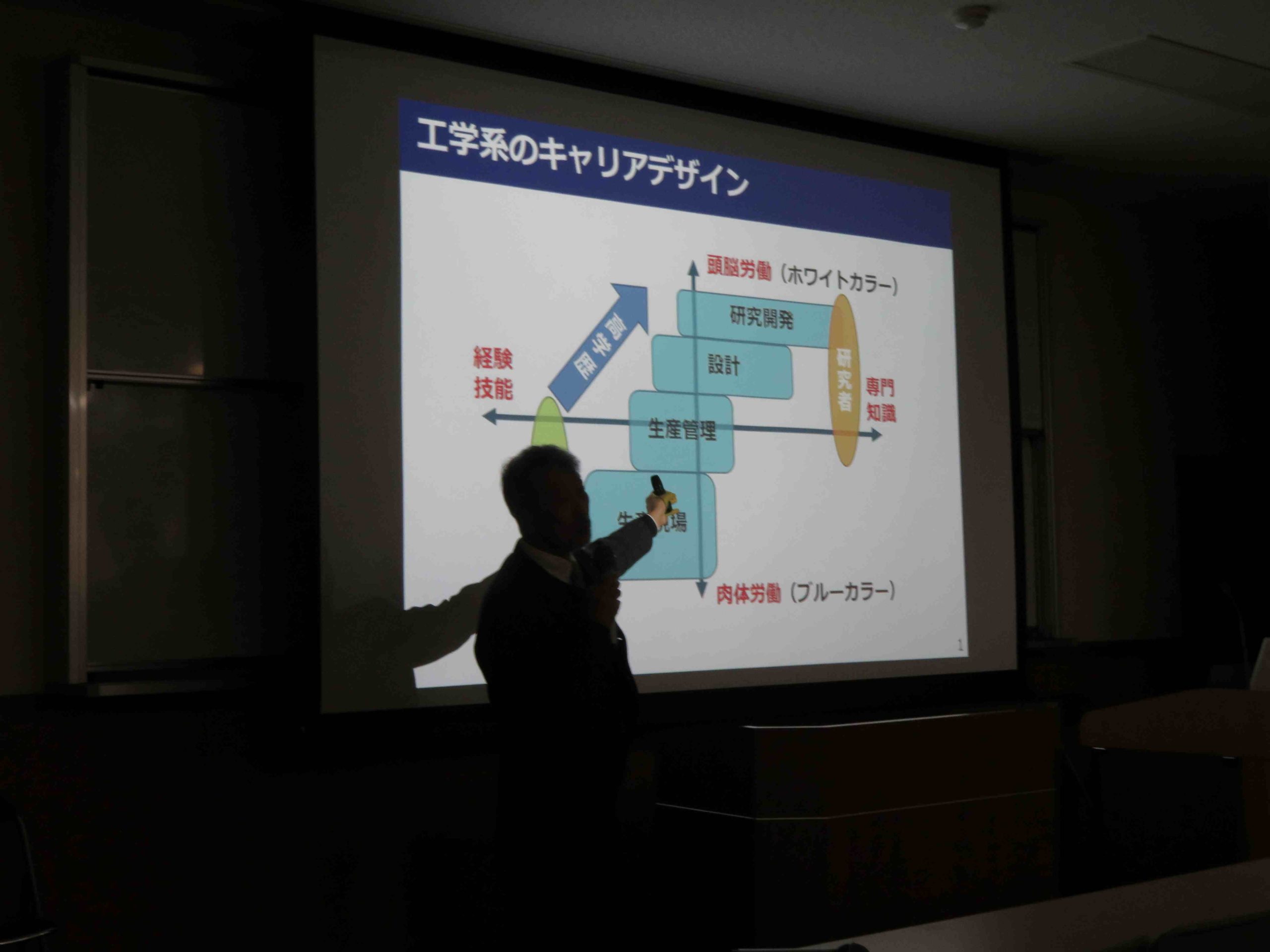 令和8年1月21日(水)本校校長によるキャリアガイダンスを実施しました。エンジニアという職業とは、高専生のキャリアモデルとは、中小企業と大手企業のそれぞれの特色についてなど、ご自身の経験を交えてわかりやすくご講話いただきました。3年生の後期の今だからこそ聞いておいて欲しい、非常に意義のあるガイダンスとなりました。参加学生にとって、将来の選択の確かな一助になったものと思います。