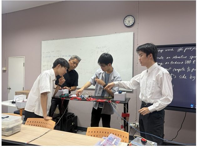 研修では、電子通信工学科およびコンピュータ工学科にて、小型レーダーの長距離測定化コンペ、オペアンプの波形観測実験、Arduinoプログラミングなど様々な講義や実験、実習に取り組みました。研修の成果として“Power Rangers 2”というゲームの開発を行い、創造性やチームワークを磨き、披露していました。加えて、タイの学生との交流、バンコクやアユタヤの寺院などの訪問を通して、文化遺産やタイ料理などタイの文化について深い学びを得ていました。