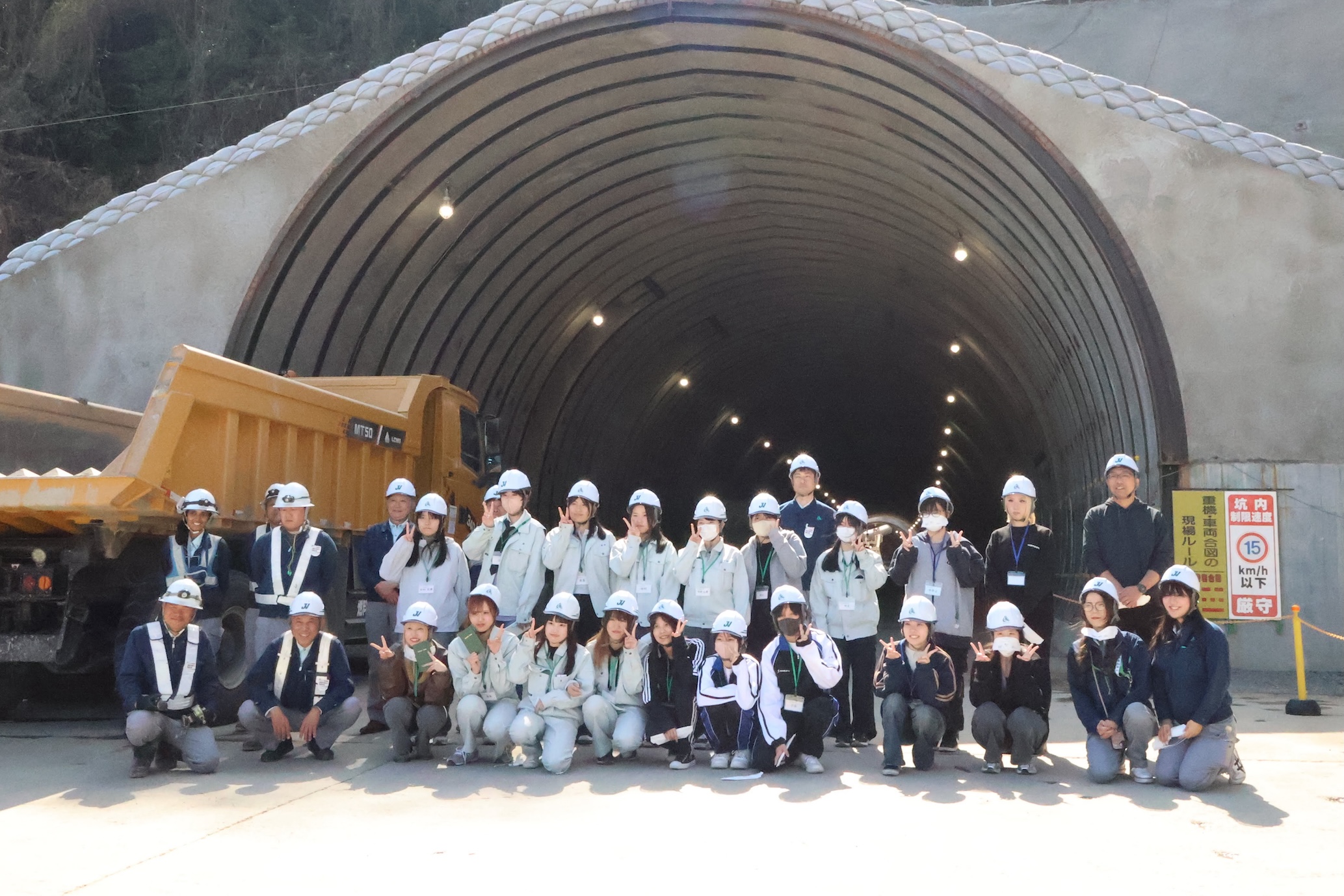参加総数は30名で、青木あすなろ建設株式会社にアレンジしていただき、徳島県の高速道路工事のトンネル掘削現場を見学いたしました。