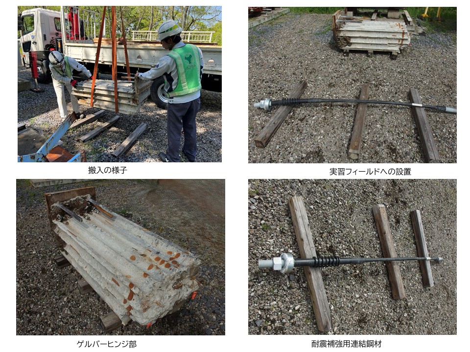 橋梁点検実習フィールドへの搬入・設置は青葉工業(株)様にご協力いただきました。